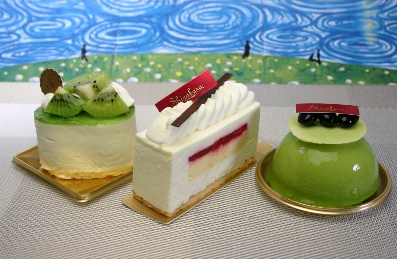抹茶のスポンジと小豆クリームが入った抹茶のムースです。生クリームに牛乳を加えて脂肪分を調整して、軽い味わいに仕上げています。