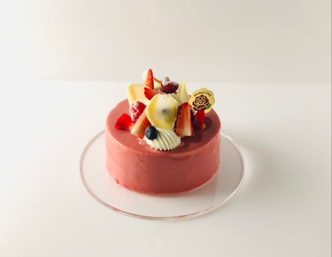 話題のルビーカカオ豆から作られる苦味の少ないピンク色のチョコレートを使ったムースの中に、フランボワーズ&ストロベリーのジュレと、ライチ&フランボワーズのムースビスキュイショコラが入っています。底にはほのかに香るシナモンのシュトロイゼルの食感をプラスしています。