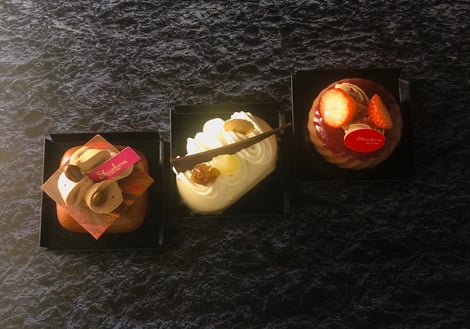 2種類のクーベルチュールをブレンドした深みのあるショコラムースに、心地良い酸味のフランボワーズジュレを載せています。センターにはバニラムース&ジョコンドショコラでまろやかな美味しさ。
