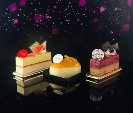 オレンジの果肉を入れたオレンジ&マンゴークリームを、チーズをブレンドしたホワイトチョコのムースで包み込んでいます。上面は艶やかなオレンジ&マンゴージュレでキュートな印象です。