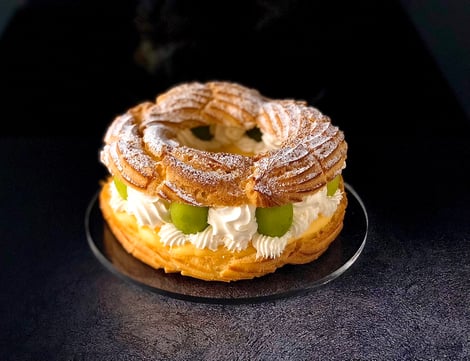 2023/08/01 リングシュー・シャインマスカット いつも白ばらをご愛顧頂きましてありがとうございます。 旬を迎えたシャインマスカットを使用したスイーツが登場しています。今回はリングシュー・シャインマスカットのご紹介です。 サクサクのリングシューに大きな粒のシャインマスカットを贅沢に組み合わせて、生クリームとカスタードをたっぷり絞りました。シャインマスカットの美味しさと、クリームとの相性のよさを存分に味わってもらえたらと思います。 ■リングシュー・シャインマスカット 15㎝ 1836円 tagPlaceholderカテゴリ: