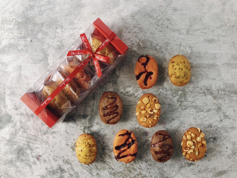 ピスタチオアプリコット・ショコララズベリー・キャラメルマカダミアヘーゼル・いちごブルーベリーフランボワーズ、4種類の味わいの生地を楽しめます。それぞれ合わせたナッツやジャムの味わいをプラスした焼き菓子を5ヶ詰め合わせたスペシャルBOXに仕立てました。
