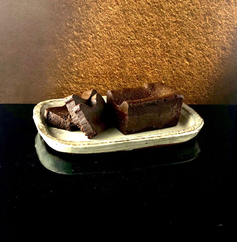 イタリア・イカム社製クーベルチュール『ダークバニーニ』とカルピスバターを使った濃厚で滑らかなショコラ。グルテンフリーで小麦粉を使っていないテリーヌです、