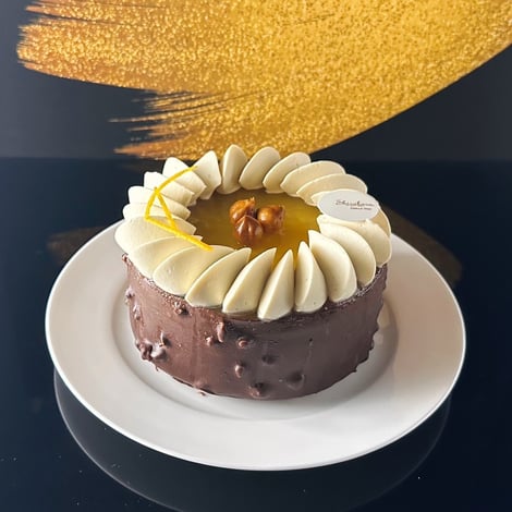 エクアドル産カカオと みなと組さんから紹介して頂いた因島産八朔を使用し、軽やかで芳醇なショコラムースのアントルメをご用意しました。コーヒーとヘーゼルナッツの香ばしさを重ね、華やかな味わいに仕上げています。期間限定の特別な味わいを、ぜひお楽しみください。
