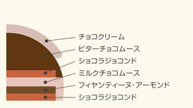 柔らかなチョコスポンジの間には、チョコクリームと黄桃をサンド