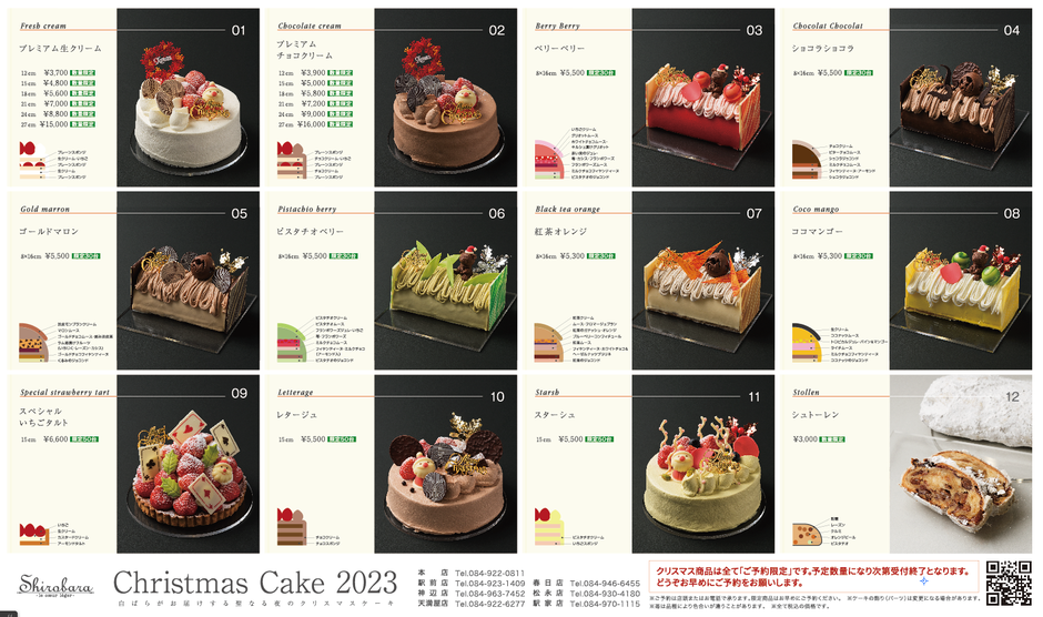 今年のクリスマス商品は全て「ご予約限定」です。予約数量となり次第、受付終了となります。どうぞお早めにご予約をお願いします。