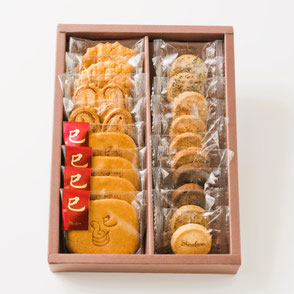 カルピスバターを使って焼き上げたサクサクと香ばしいサブレの間に、ほんのり香るばらのクリームをサンドした白ばらで一番人気の焼菓子です。干支の柄で焼き上げ、縁起の良い深紅に金の文字で、一年の無病息災を祈願しています。